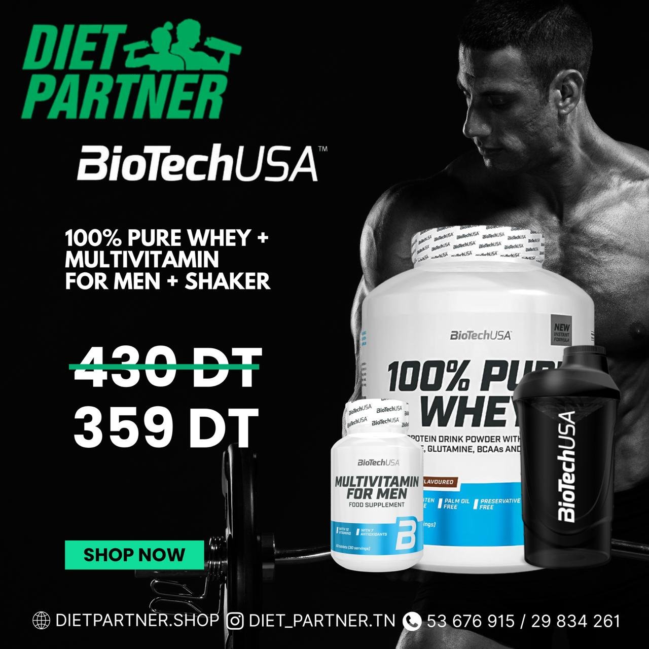 Le combo ultime BioTechUSA est enfin en promo : 100% Pure Whey + MULTIVITAMIN FOR MEN + Shaker… le tout à un prix qui défie toute concurrence.